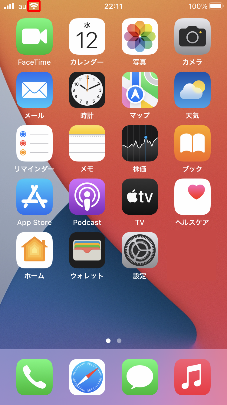 ステータスバーに、Wi-Fiアイコンが表示されていることを確認してください。