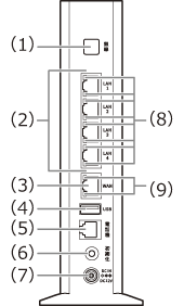 同梱のLANケーブルを使用して、ONUなど上位ネットワーク機器と接続するためのポートです。 (1000BASE-T/100BASE-TX/10BASE-T) |