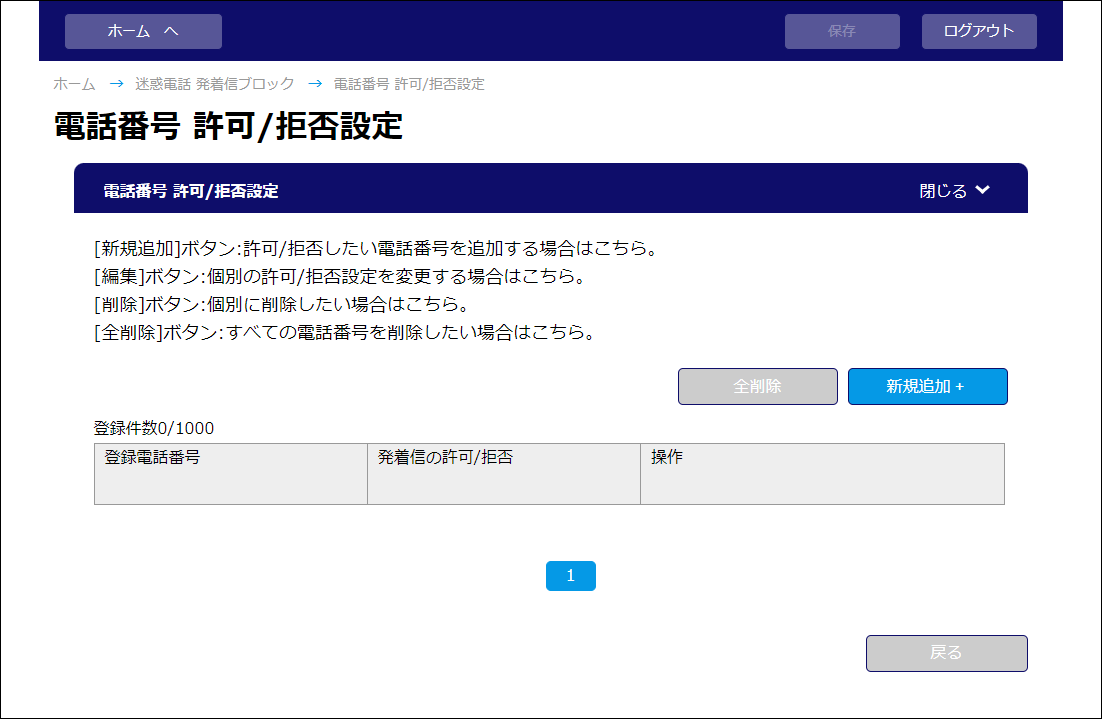 電話番号 許可/拒否設定
