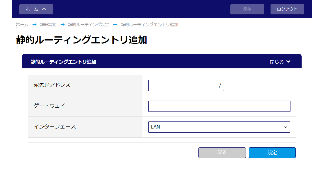 ルーティング先となるインターフェース(LAN/WAN)を選択します。