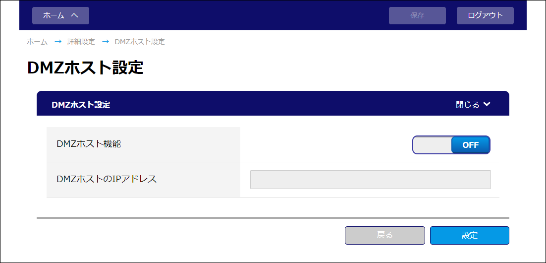 DMZホスト設定