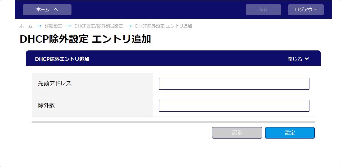 DHCPサーバは、本項目で指定されたIPアドレスから「除外数」で指定されたIPアドレス数分を、割り当て範囲から除外します。