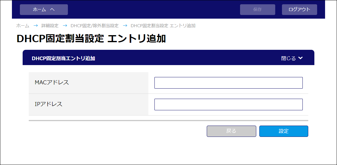 特定の端末に、固定のIPアドレスを割り当てる場合に入力します。