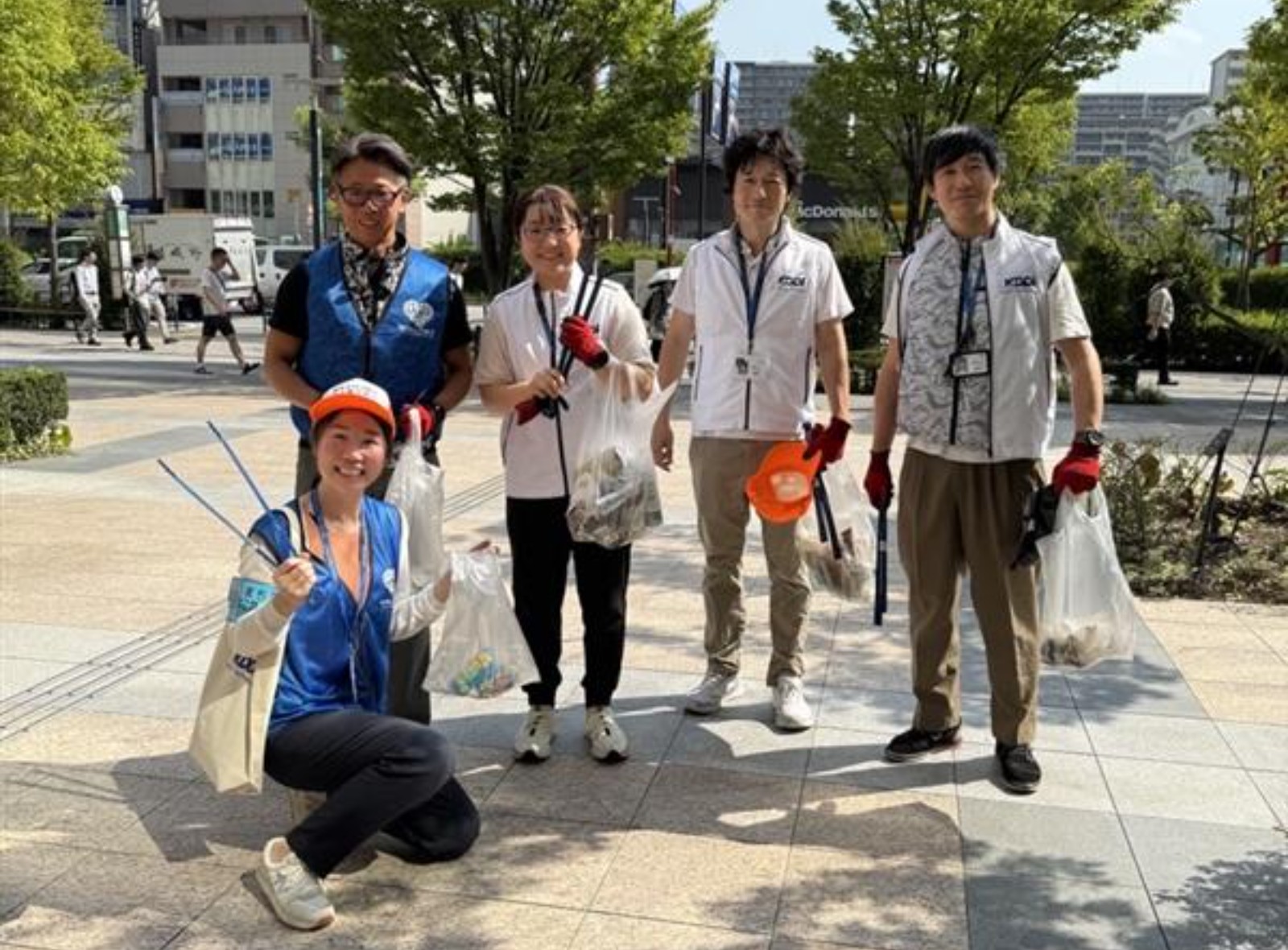 AM8時20分ごろに集合、ベストや帽子の着用など事前準備を行った後、気楽な雰囲気でスタート。約20分間オフィスのある豊洲アーバンポイントビル周辺のゴミを拾いました。普段のオフィス周辺は綺麗にされている印象だったのですが、ゴミ拾いを行ってみると、ポイ捨てされているゴミが多いことに気づくことができました。